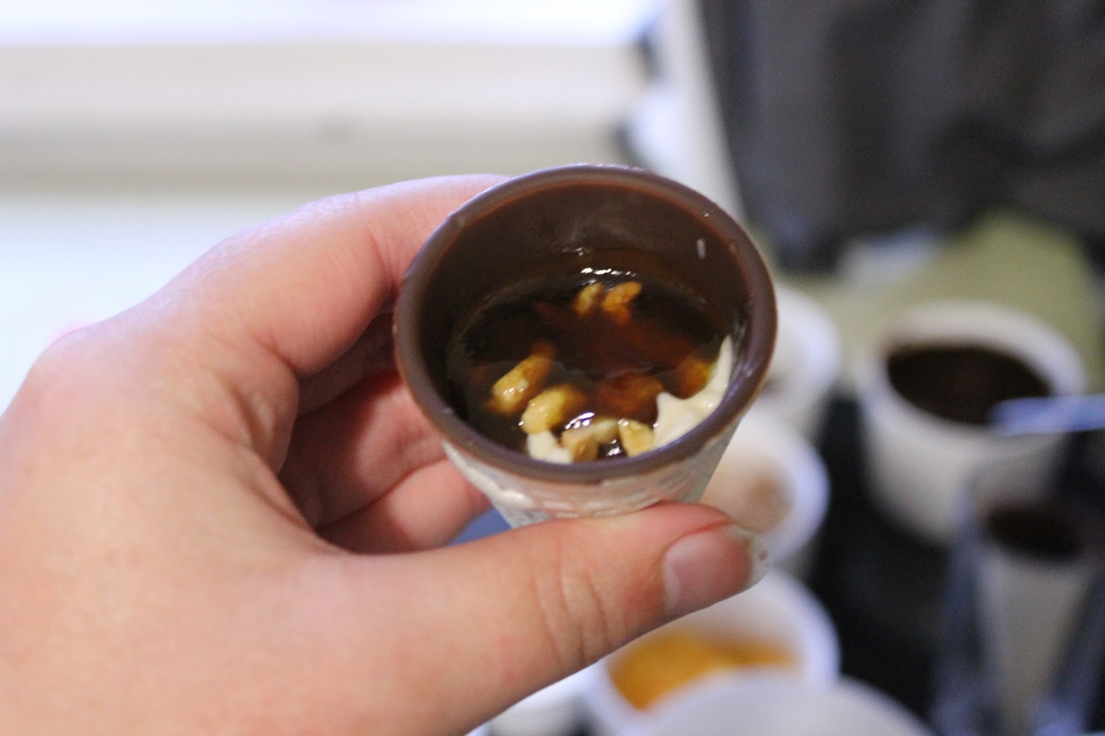 Place a Teaspoon or so of the chocolate into the cone and swirl it around to completely coat an tip out any excess